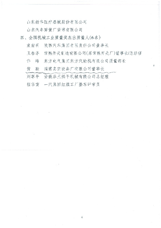 摘要:黃毅董事長榮獲“全國機械工業(yè)質(zhì)量獎杰出質(zhì)量人”榮譽稱號
